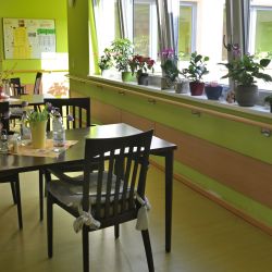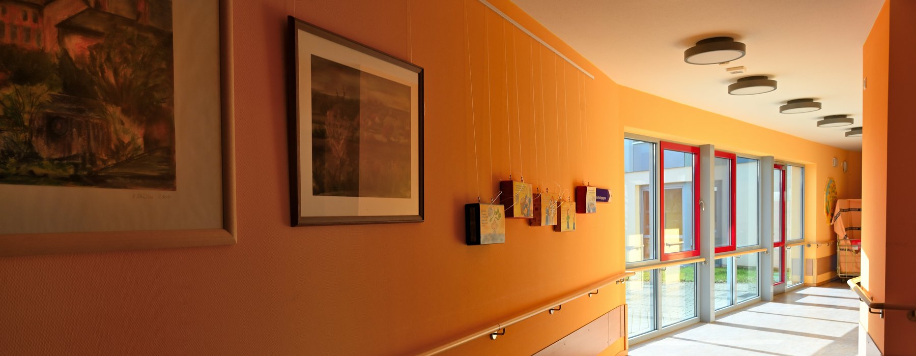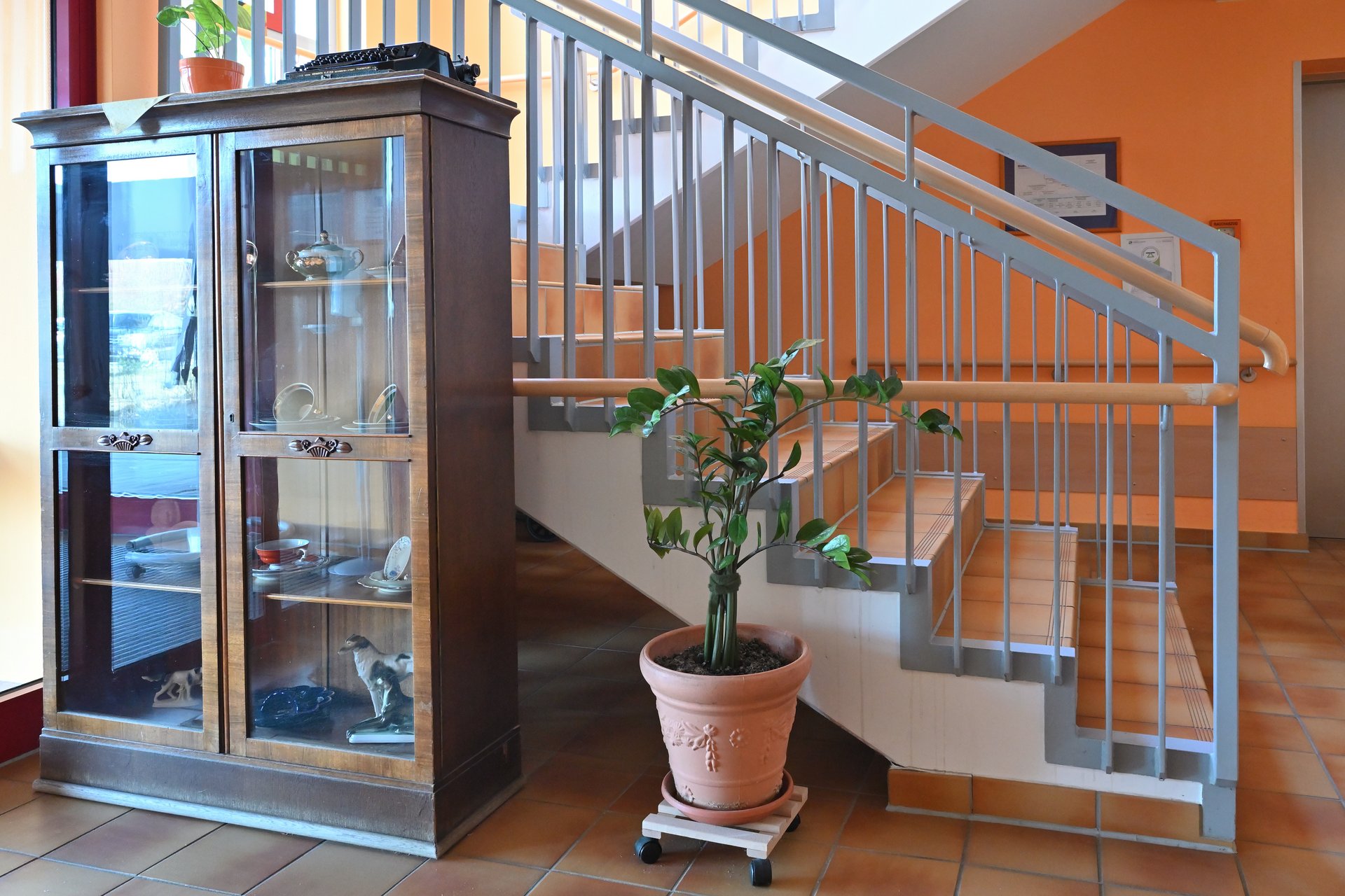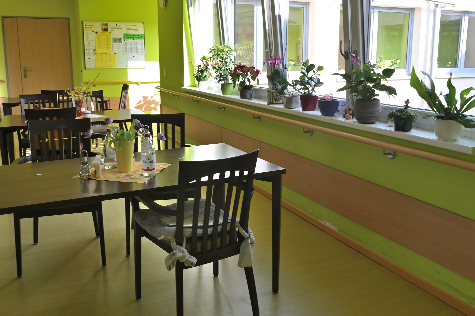 Sehr viele Bewohner*innen bringen auch kleine „Lieblings-Möbelstücke“, Bilder, Bücher oder sonstige Erinnerungsstücke mit, die für sie wichtig sind und gestalten ihr Zimmer nach ihren persönlichen Vorlieben. Auf zwei Ebenen bietet das Haus Platz für 72 Bewohner. Jede Ebene bildet eine organisatorische Einheit, die als ein Wohnbereich zusammengefasst ist.