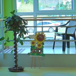 Die Anlage verfügt im Erdgeschoss in jeder Hausgemeinschaft über ein Atrium, das als zusätzlicher Aufenthaltsort im Freien genutzt werden kann. Zusätzlich ergänzen die Terrassenflächen im Untergeschoss die räumliche Struktur des Hauses. Der Gemeinschaftsraum im Erdgeschoss ist Treffpunkt für Gemeinschaftsveranstaltungen und Feste. Das aktuelle Angebot ist dem Veranstaltungsplan und dem Wochenplan zu entnehmen. Auch Geburtstage oder individuelle Familienfeiern werden gern im Gemeinschaftsraum durchgeführt. Großzügig angelegte Gemeinschaftsterrassen stehen im Obergeschoss zur Verfügung und laden zum Verweilen an der frischen Luft ein. Im Eingangsbereich befindet sich ein Teich mit einem Springbrunnen. Durch die Fahrstuhlnutzung kann jede Ebene barrierefrei erreicht werden.
