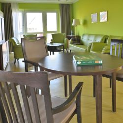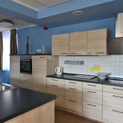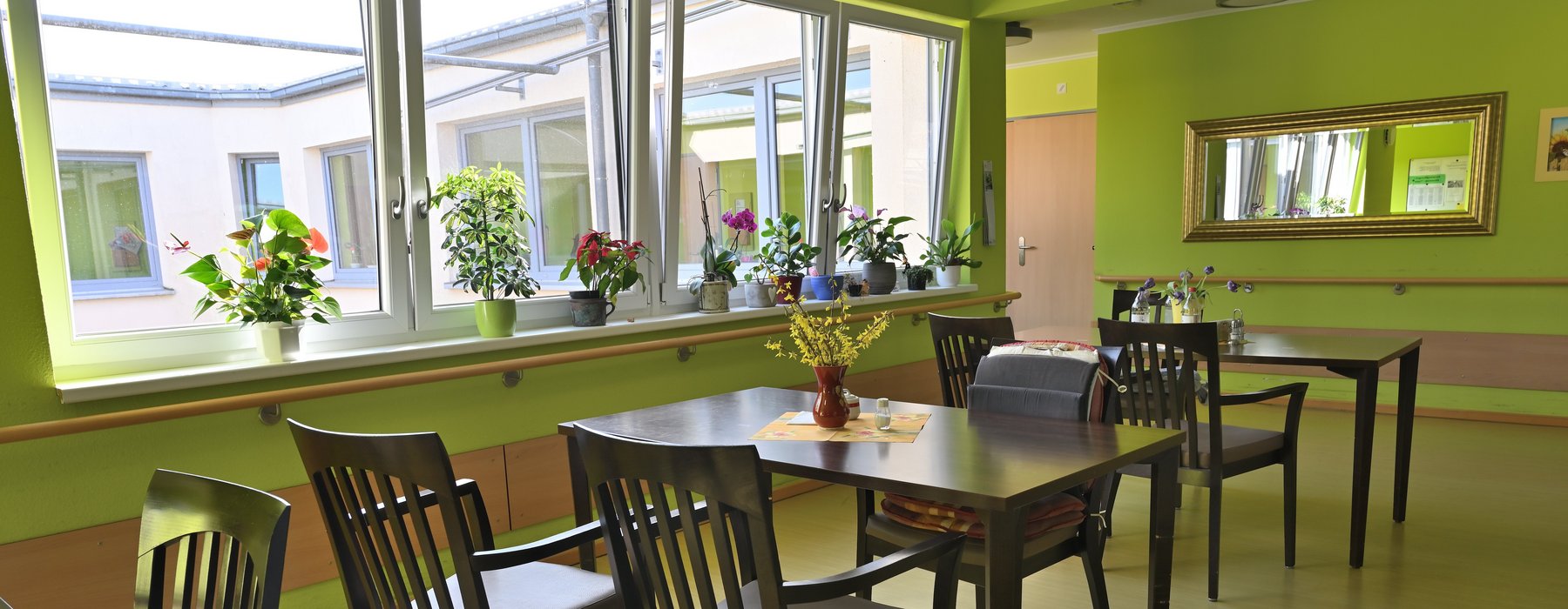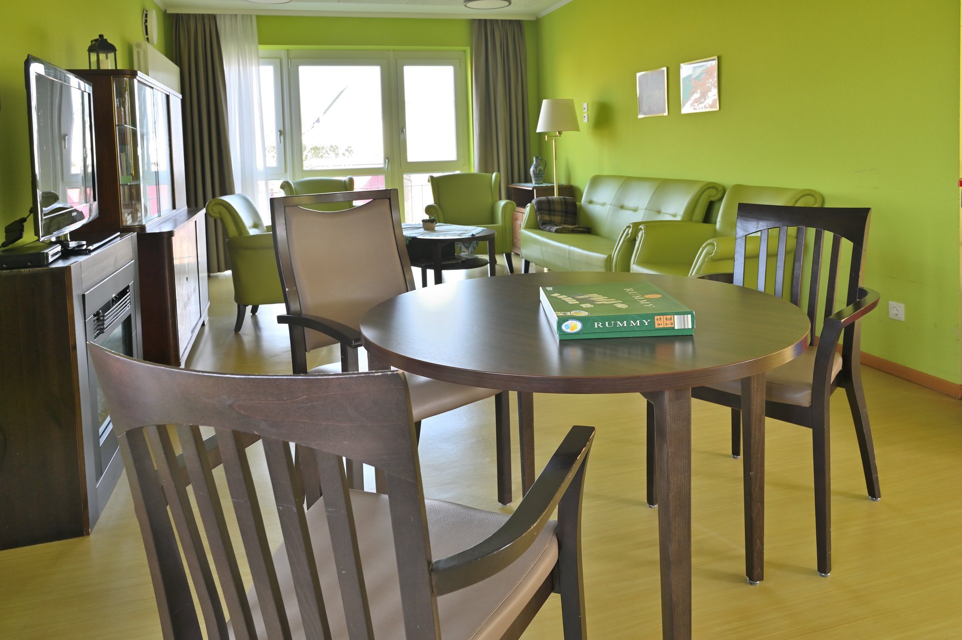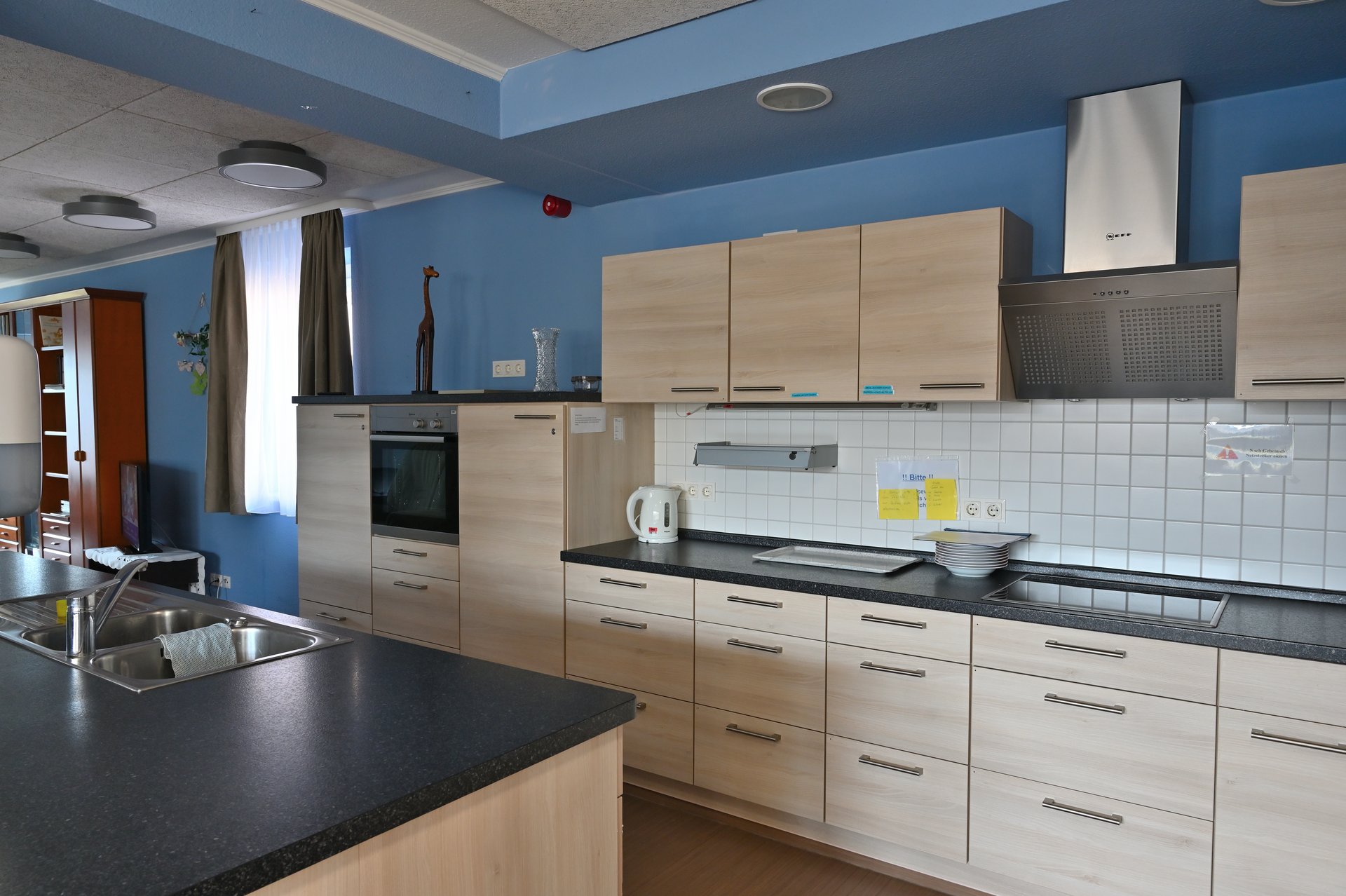 In jeder Hausgemeinschaft gibt es einen modernen und gemütlichen Küchen- und Wohnbereich. Hier treffen sich die Bewohner*innen zu Gesprächen und zum Gedankenaustausch, zum Spielen oder Kochen. Anschließend genießen sie ihre gemeinsam zubereiteten Mahlzeiten. Weiterhin befindet sich dort ein gemütliches Wohnzimmer, das für Angebote der Betreuung, als Rückzugsort und als Treffpunkt für Bewohner*innen und deren Freunde und Angehörige zum gemütlichen Kaffeetrinken genutzt werden kann.