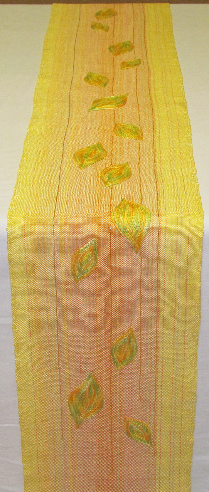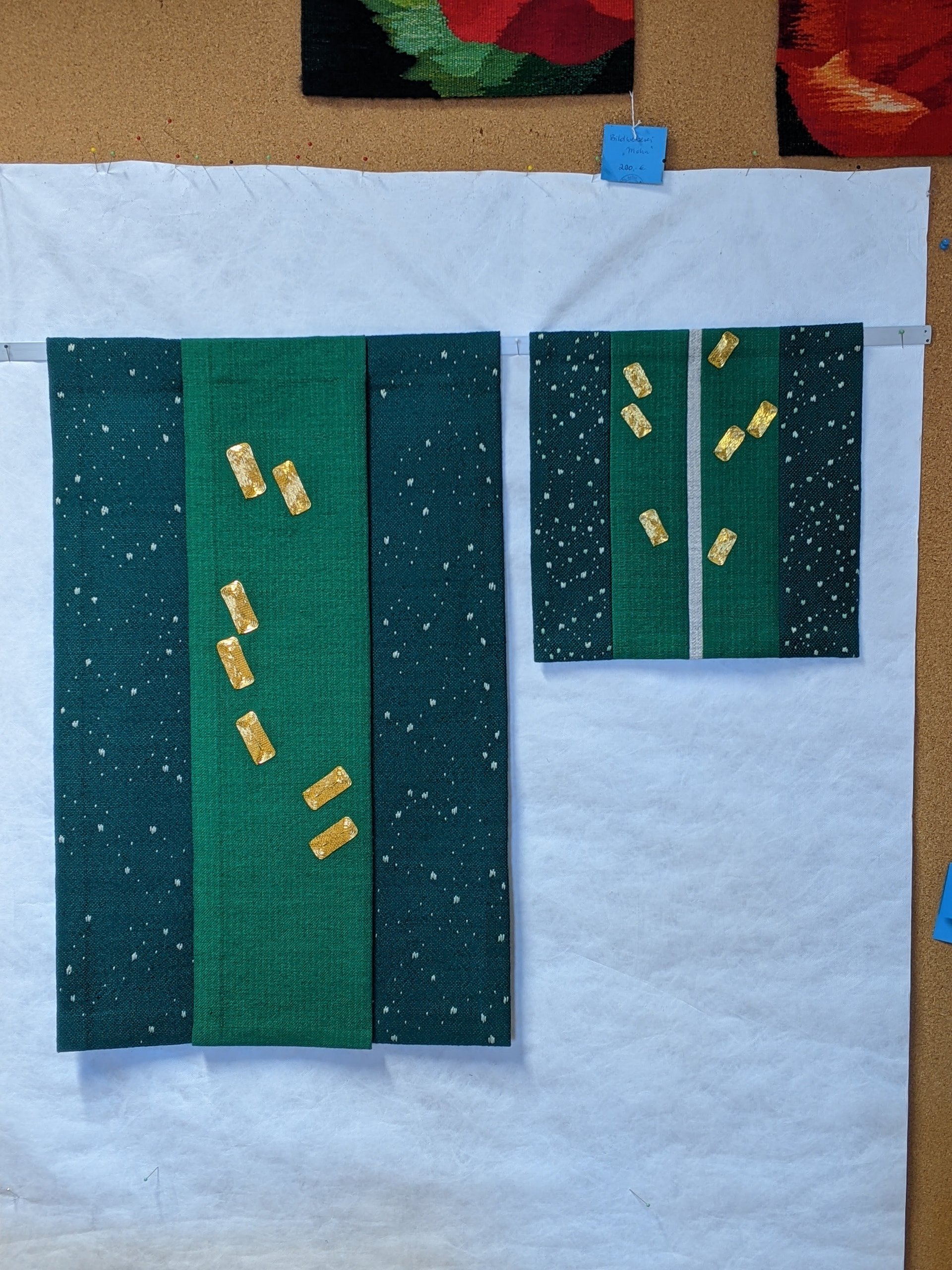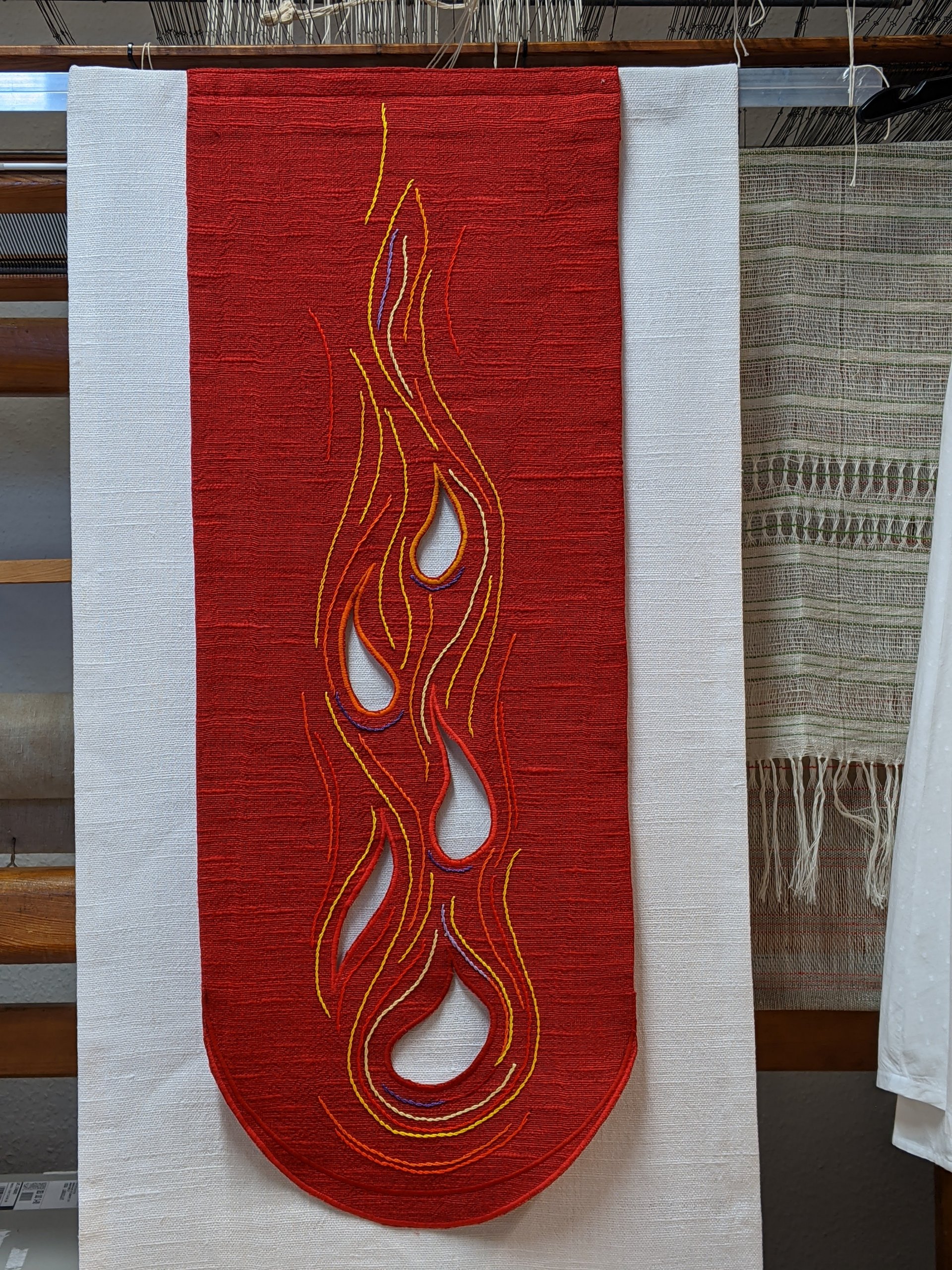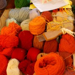 Die Handarbeit beim Weben, Sticken und Applizieren garantiert hohe Qualität und Individualität der Arbeiten. Die Wolle wird in der Werkstatt speziell eingefärbt. Die anderen Materialien werden schon farbig eingekauft. Handgewebte Stoffe werden für die Stickerei und Applikation selbst hergestellt. Die Techniken können auch miteinander kombiniert oder auf experimentelle Weise genutzt werden.