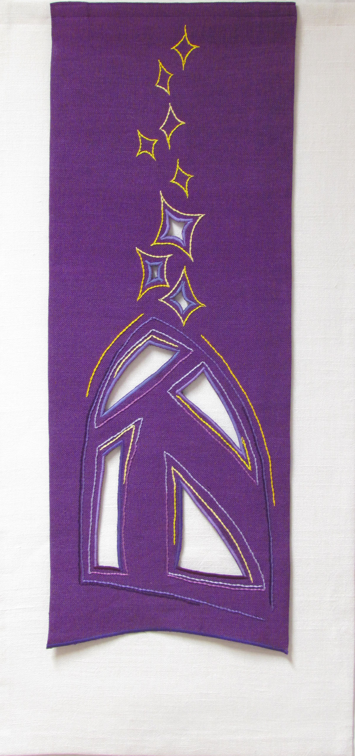 WEISS-STICKEREI: wird bei der Gestaltung von Abendmahlstüchern und Altardecken verwendet und hat unzählige Möglichkeiten an Hohlsäumen, Durchbruchkanten, Flach- und Stielstichvariationen etc.