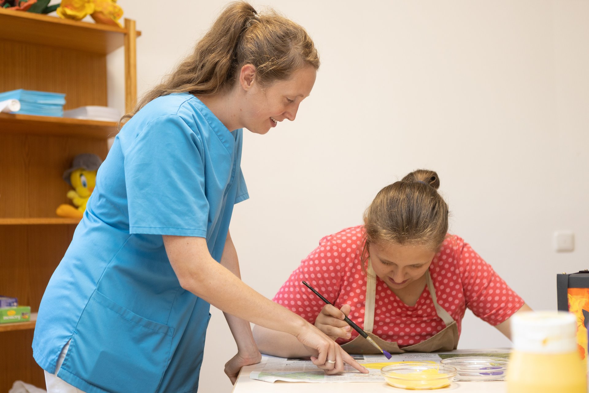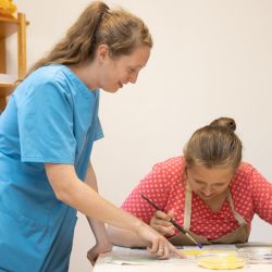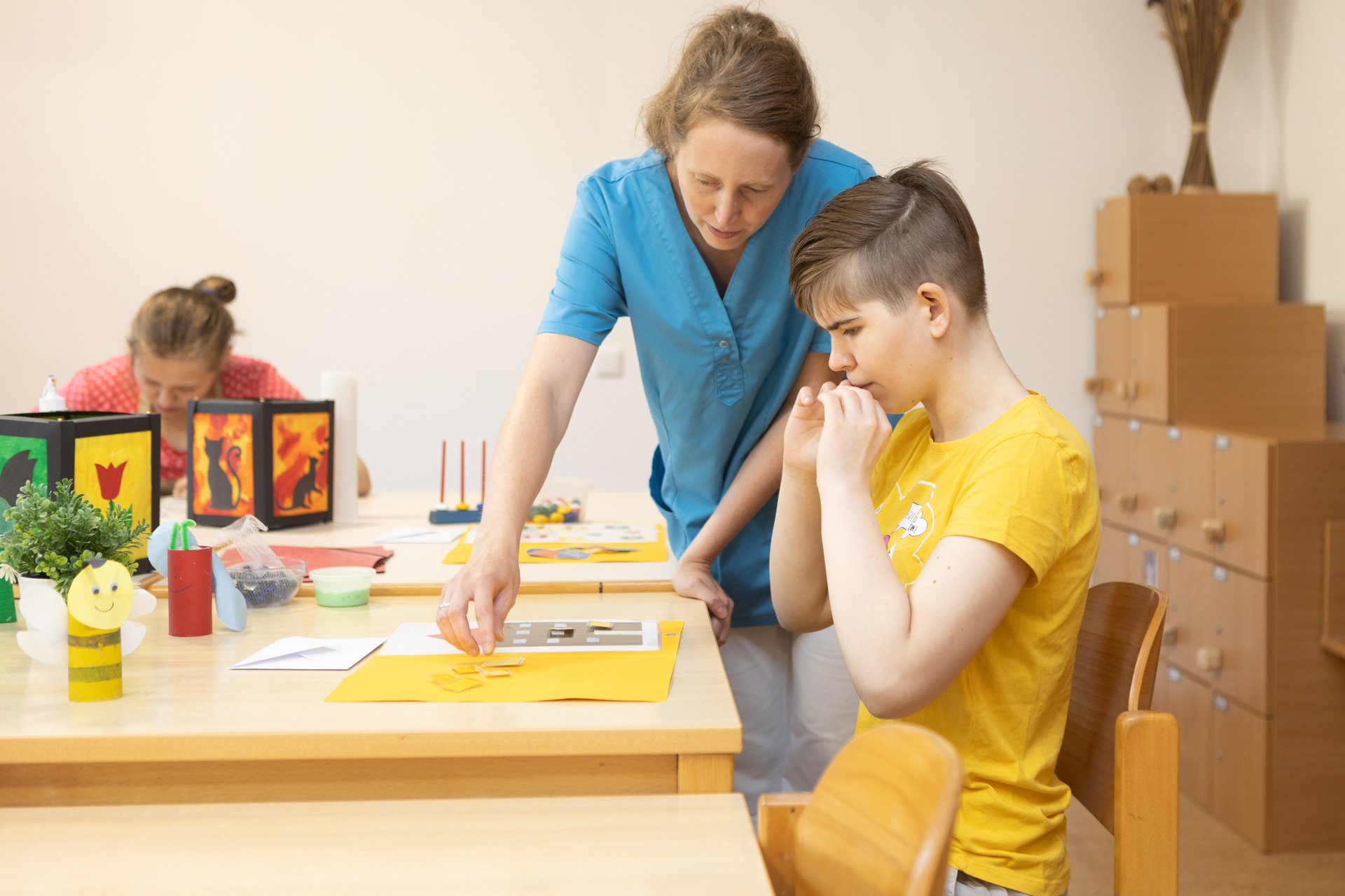 Unser Fachpersonal unterstützt in Form von Anleitung oder stellvertretender Ausführung bei der individuellen Basisversorgung einschließlich heilpädagogischer, pflegerischer sowie begleitender und psychosozialer Hilfen. Sie begleiten Menschen mit wesentlicher geistiger Behinderung, geistiger und mehrfacher Behinderung im Rahmen tagesstrukturierender Angebote mit folgenden Zielen: