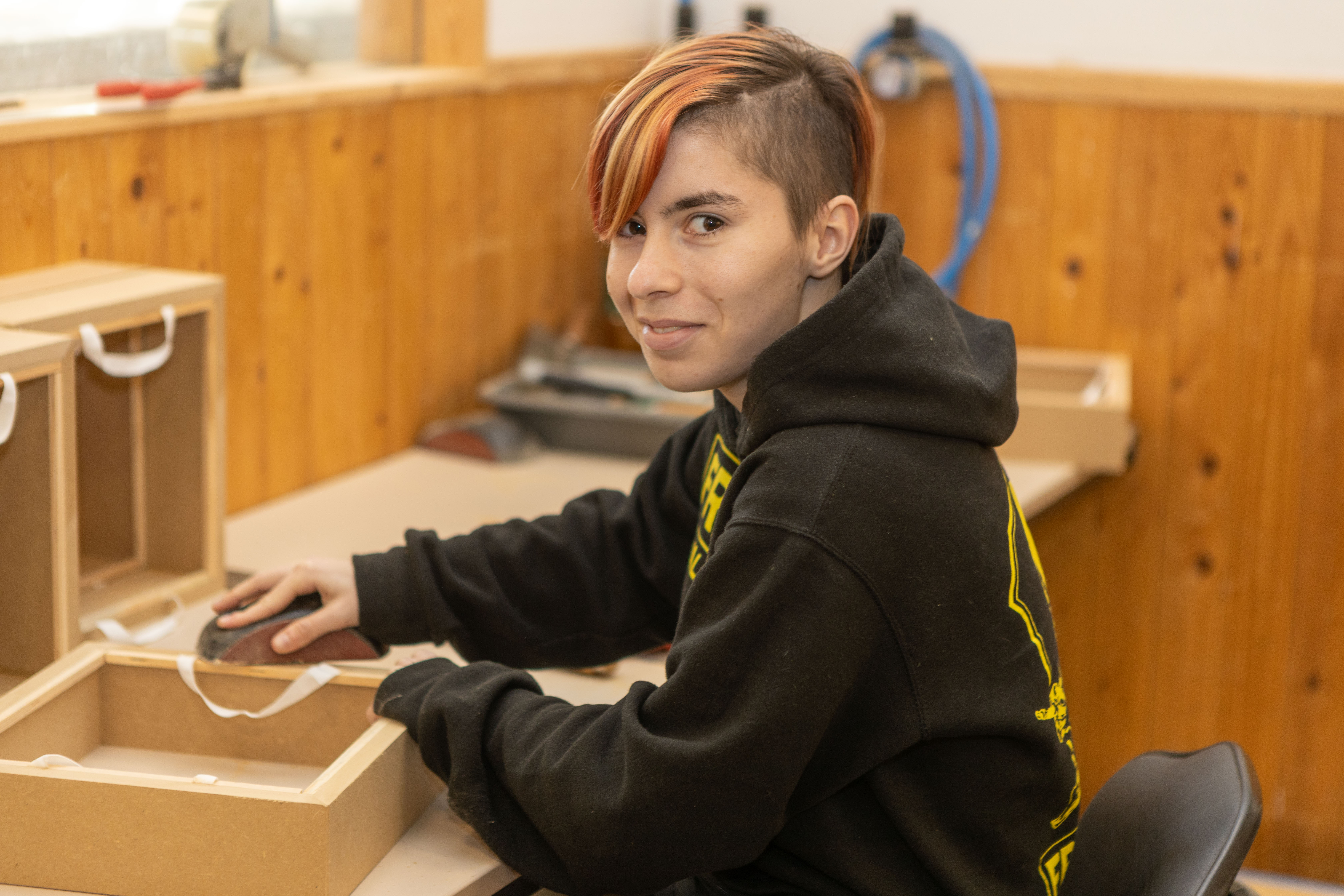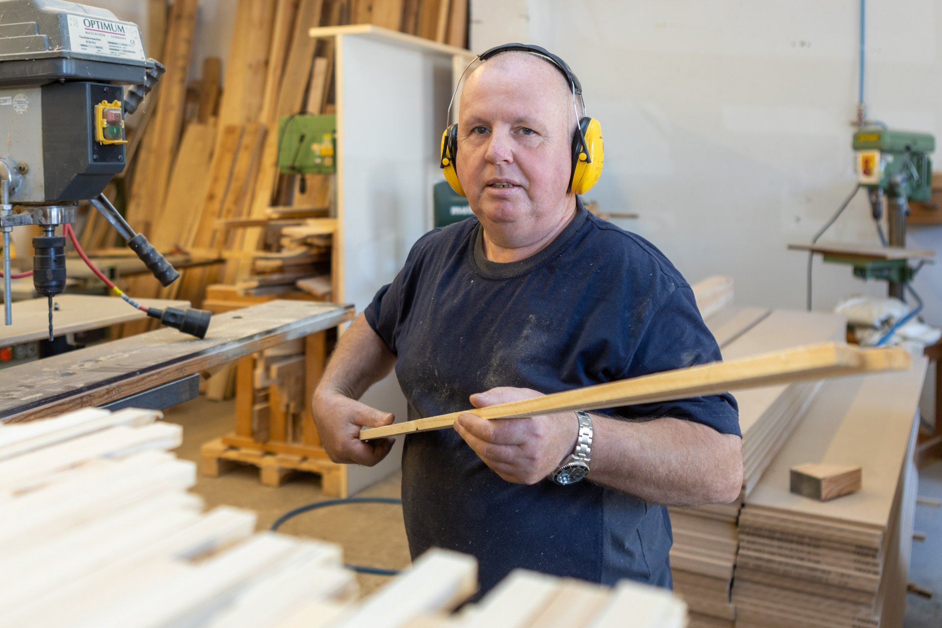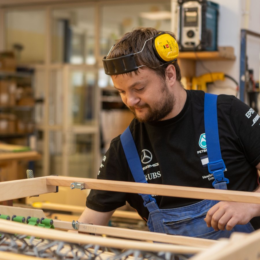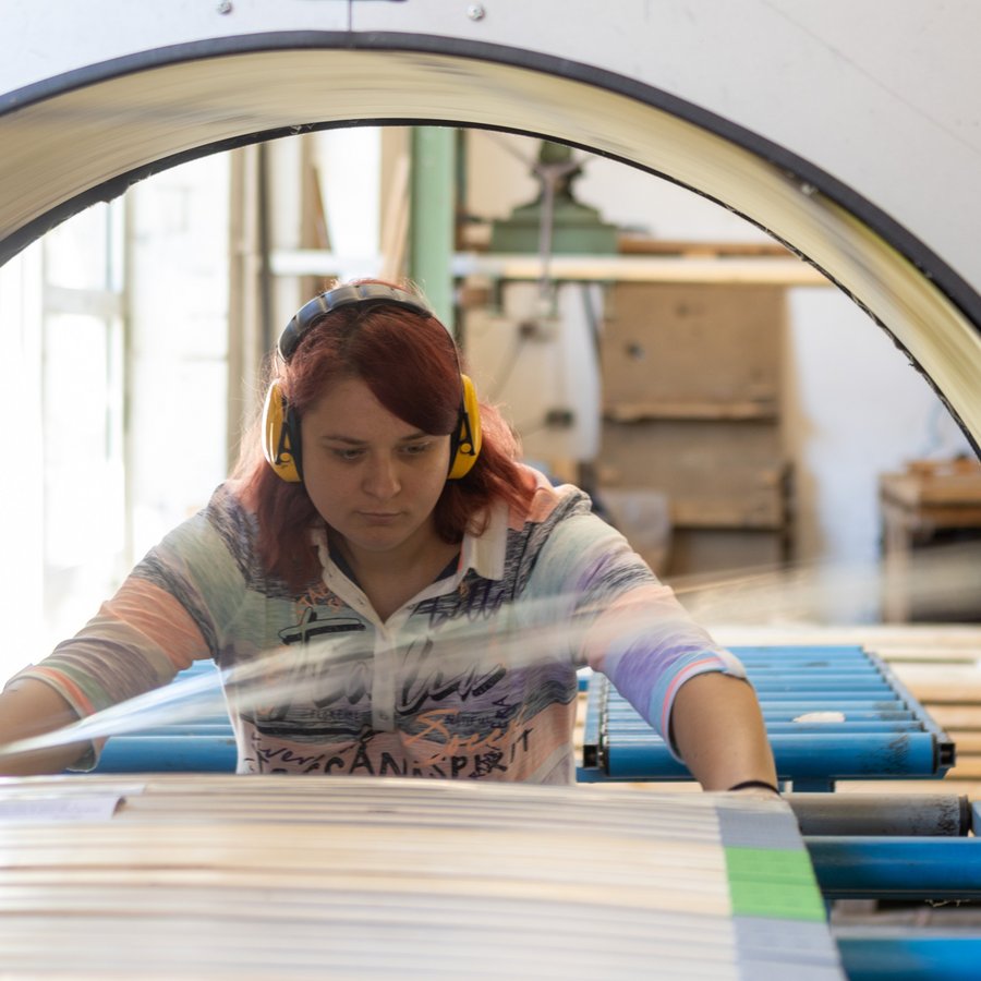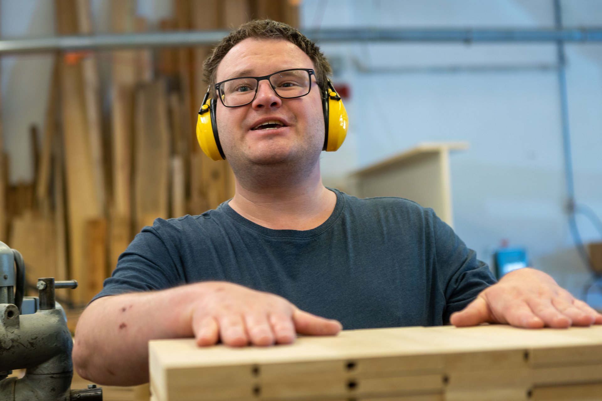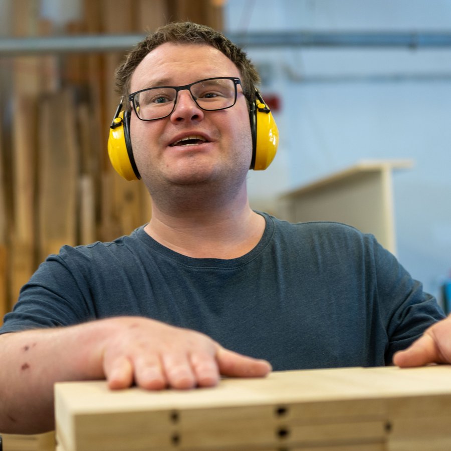 Unser Produktionsbereich Holzverarbeitung bietet bis zu 48 Beschäftigten vielfältige Arbeitsangebote. Von einfachen Komplettierungsarbeiten bis hin zu Arbeiten an professionellen Holzbearbeitungsmaschinen bietet unsere Tischlerei jedem Beschäftigten einen individuellen Arbeitsplatz. Klient*innen bedienen Flurförderzeuge, wie Gabelstapler und Ameise. Ihr Einsatz erleichtert den Transport der Halb- und Fertigwaren innerbetrieblich sowie das Be- und Entladen von LKW.