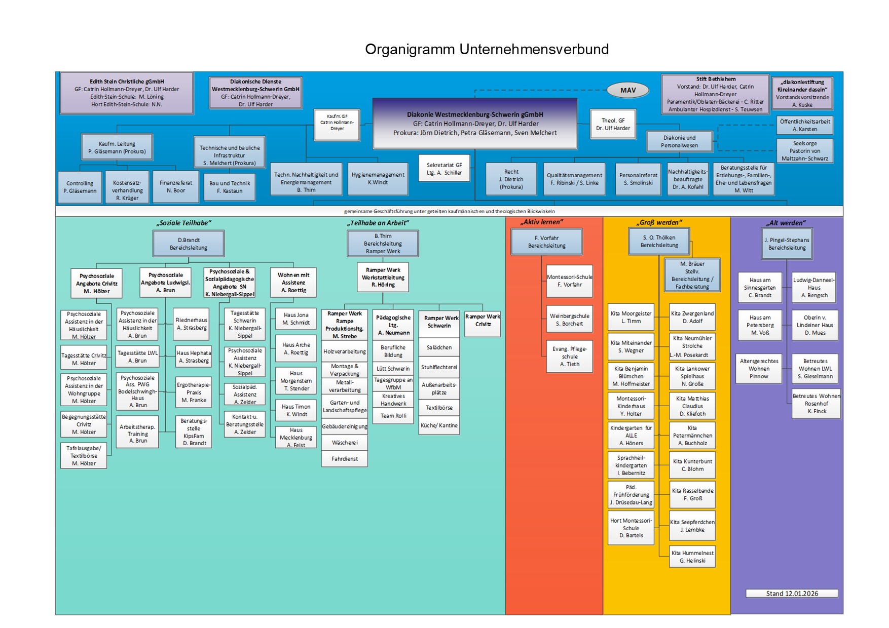 Am 28. Mai 2021 haben das Stift Bethlehem und das Diakoniewerk Neues Ufer die Gesellschaft Diakonie Westmecklenburg-Schwerin gegründet. Sie vereint die soziale Arbeit der beiden Muttergesellschaften unter einem gemeinsamen Dach.